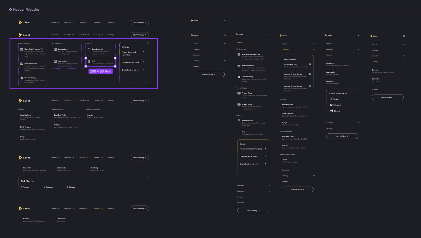 J’ai participé à la création et structuration de plus de quarante composants réutilisables, dont un menu de navigation particulièrement complexe pour le site vitrine. Ce composant intégrait plusieurs niveaux de navigation et a été décliné pour mobile, tablette et desktop.